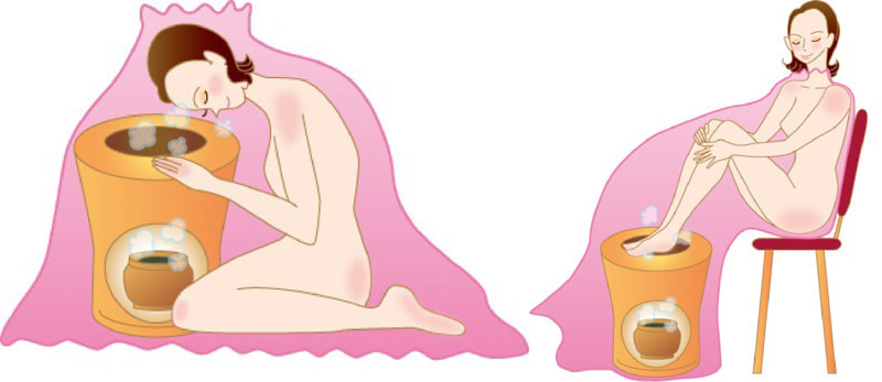全身の皮膚や下半身の粘膜から薬草のスチームを吸収させ、身体を芯から温める韓国の伝統的な民間療法です。